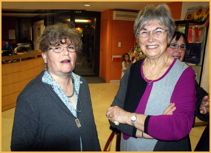 Au centre : Marianne Mazière, chef dentellière, et Alina Brisa, présidente du Foyer de Saint-Blaise.