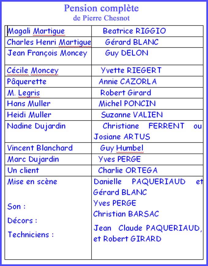 Le temps des savoureuses « pagnolades », apparues voici trois décennies bien sonnées, n’est pas révolu. Il y a toujours un morceau de choix, puisé dans la trilogie marseillaise Marius-Fanny-César, pour jouer à la demande au pied levé en milieux scolaires ou associatifs. Des sketches de Jean-Michel Ribes diversifient aussi ce fond de commerce qui n’a rien de lucratif, mais qui, en revanche, fait la joie de nombreux fans, à 50 kilomètres à la ronde.