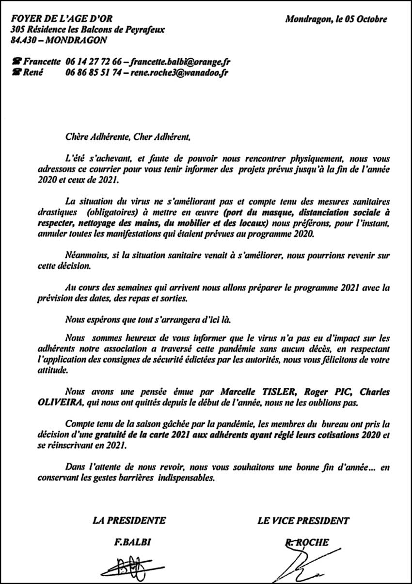 Un communiqué du Foyer de l'âge d'or (cliquer dessus pour l'agrandir)