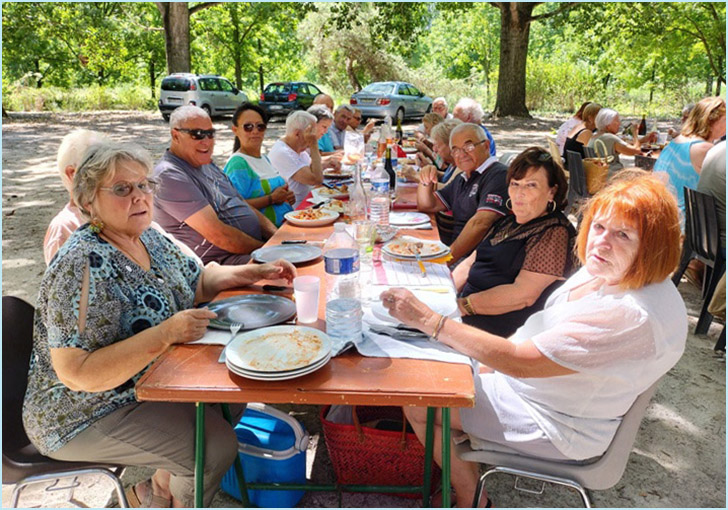 Les vacances, la canicule et certainement les JO ont influé sur le nombre de convives de ce jeudi 8 août. Habituellement, ils sont toujours près d'une centaine de convives contre une petite cinquanteine, réunie sous les frais ombrages de la ferme de l'Ile vieille. Au menu : melon-jambon cru, poulet basquaise (excellent), fromage et vacherin (traiteur de l'Atelier des Gourmets). Prochain repas : la traditionnelle paëlla le jeudi 5 septembre.