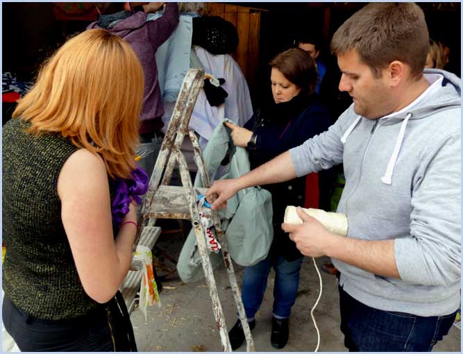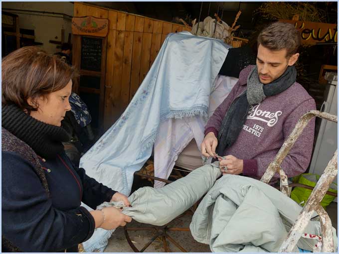 Léa (à gauche) a récupéré de vieilles étoffes chez