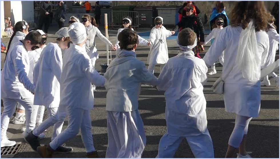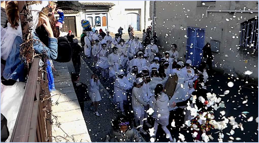 Ils sont l’armature des réjouissances païennes et, de bout en bout, escortent le charivari : irruption en fanfare, défilé en ville, musiques et chants traditionnels, jugement de l’immonde Carmentran, confectionné par les jeunes gens.