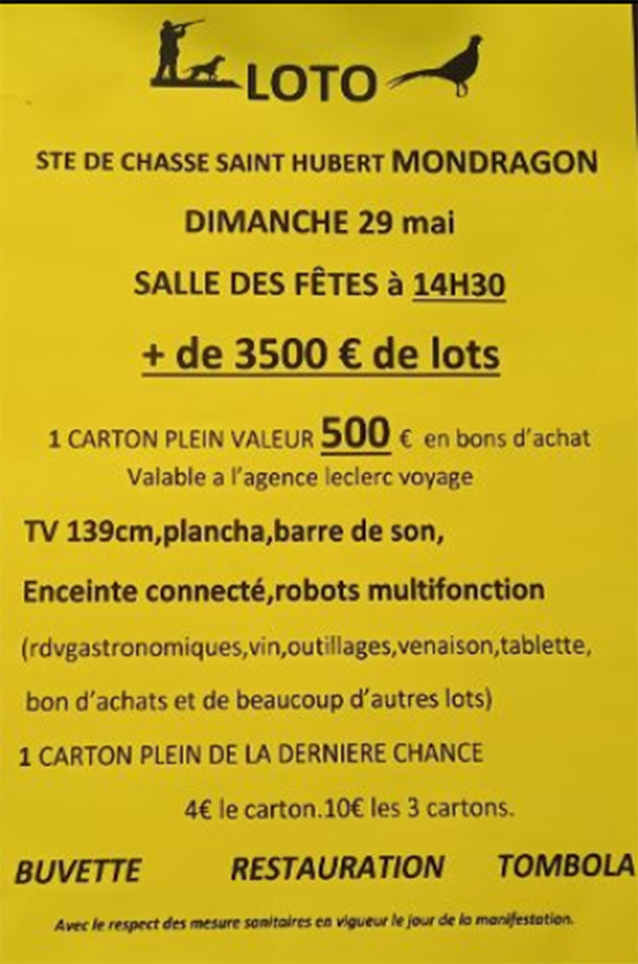 - Son loto annuel se déroulera à la salle des fêtes dimanche 29 mai à partir de 14h30.Affiche