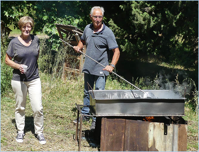 Le pied encore assez alerte et l'esprit suffisamment vagabond, ces joyeux octogénaires, nés en 1943, sont ceux de la fameuse classe militaire 63. Créée en 1989, une association locale du même nom décidait les retrouvailles annuelles d'anciens soldats du contingent, dont fait notamment partie le maire Christian Peyron. Durant plus de 30 ans, des virées touristiques et gastronomiques ont prolongé les bons souvenirs de jeunesse. La sagesse de l'âge tempère aujourd'hui l'ardeur de 25 adhérents. Un banquet champêtre à la ferme de l'Ile-Vieille vient de suffire à 32 convives (sympathisants compris), régalés par une succulente jambalaya (spécialité exotique de la New Orléans), préparée par le traiteur Georges (Tulette). Prochain rendez-vous pour le 80ème anniversaire des "classards" samedi 2 septembre : repas à la salle des fêtes. J. P.
