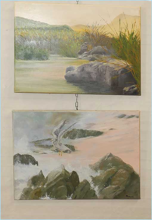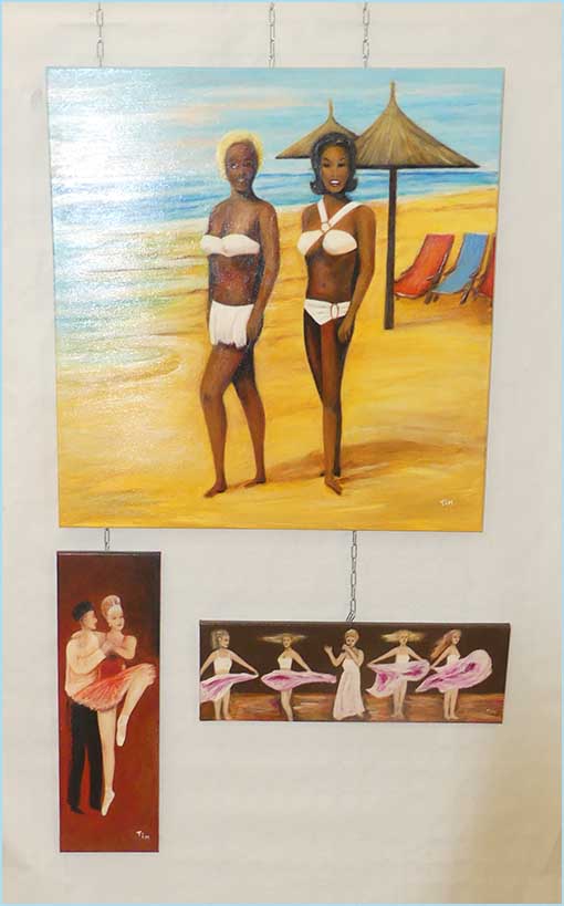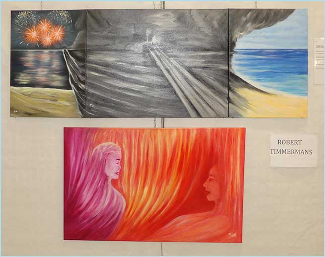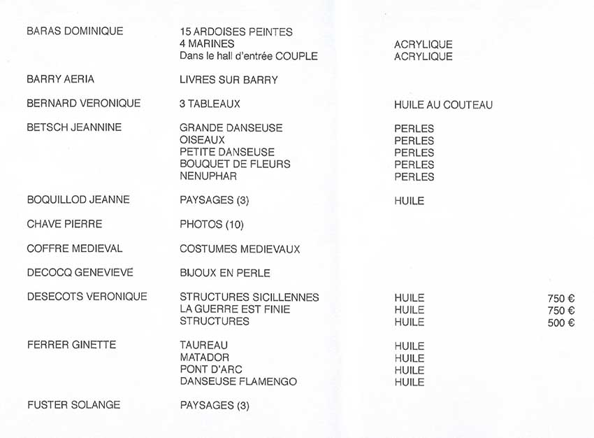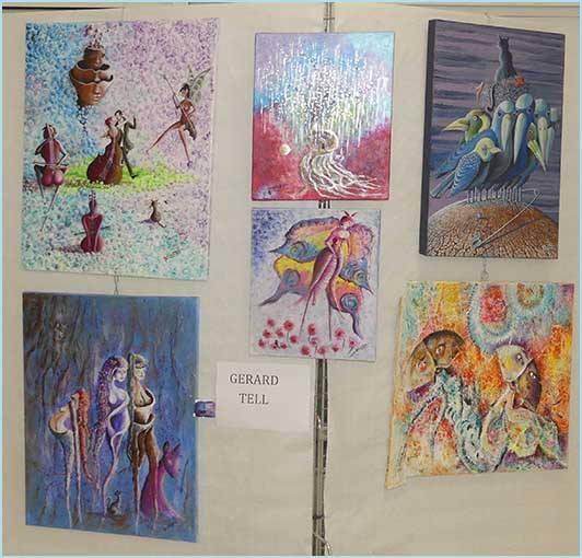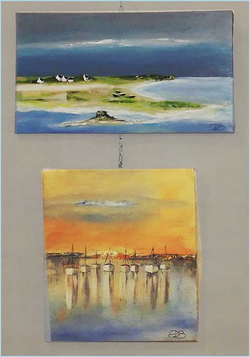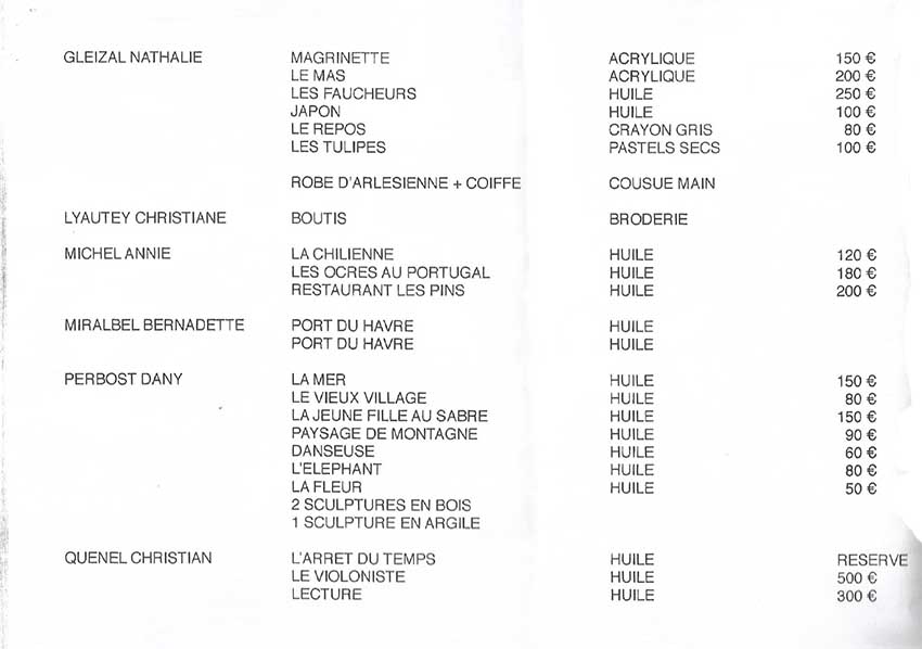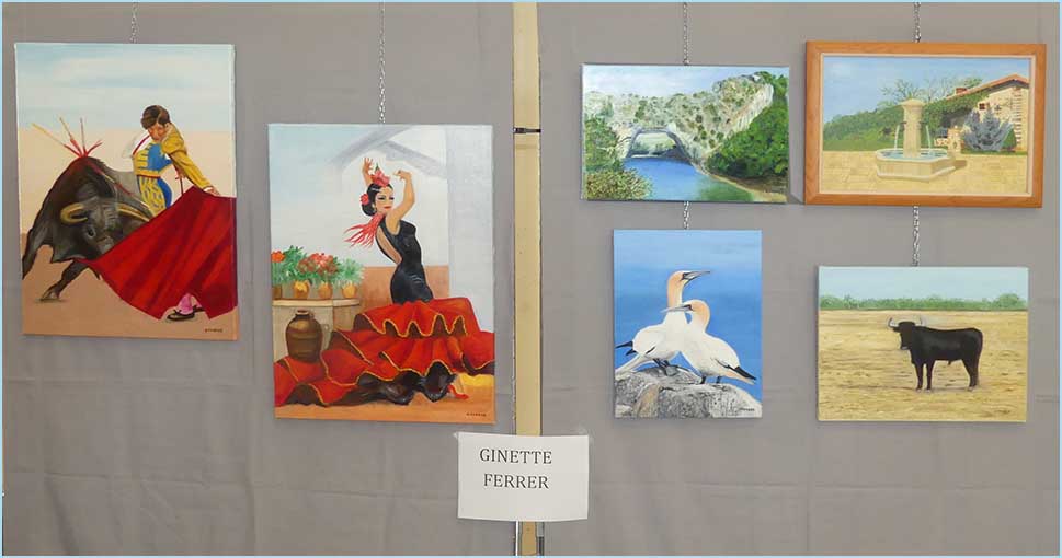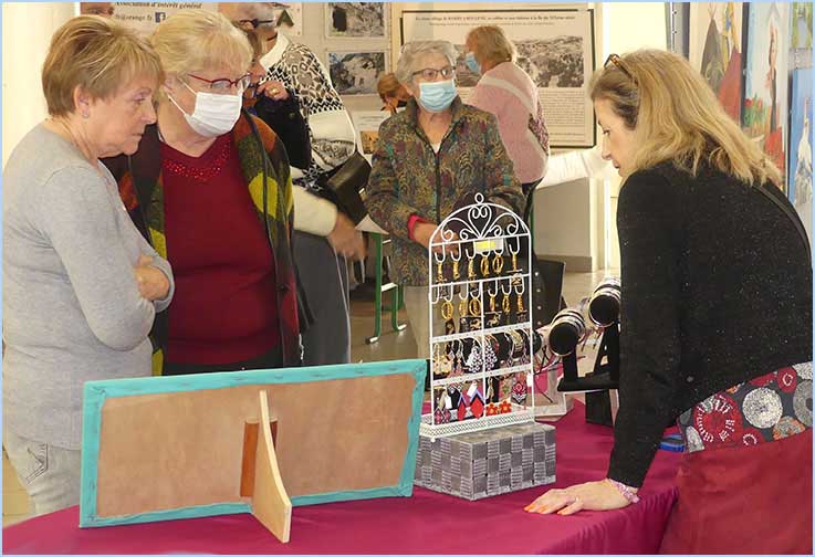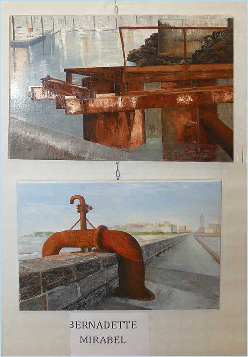 L'exposition ne dure que le temps d'un week-end. C'est court pour tant de travaux artistiques diversifiés : peinture, sculpture, photographie, travaux d'aiguille, artisanat d'art, etc. J'ai renoncé à légender toutes mes photos... C'est un véritable parcours du combattant, en quête du nom juste correspondant à l'oeuvre. Tout est bien écrit (bravo à l'organisation), mais je mélange mes pinceaux ! A ce propos, j'ai peint et exposé, moi aussi, dans ma prime jeunesse. Comme la plupart de ceux qui exposent ici, je n'étais qu'un peintre du dimanche, un amateur qui a largué sa palette. Je continue sans doute à travers ceux qui sauvegardent leur hobby pictural. D'où ces pages multiples, sur ce site web, qui leur sont consacrées. J. P.
