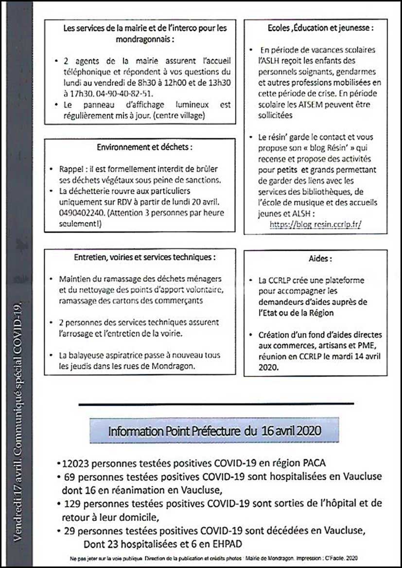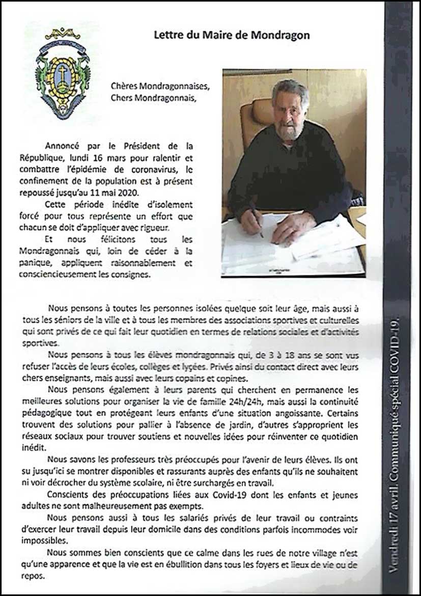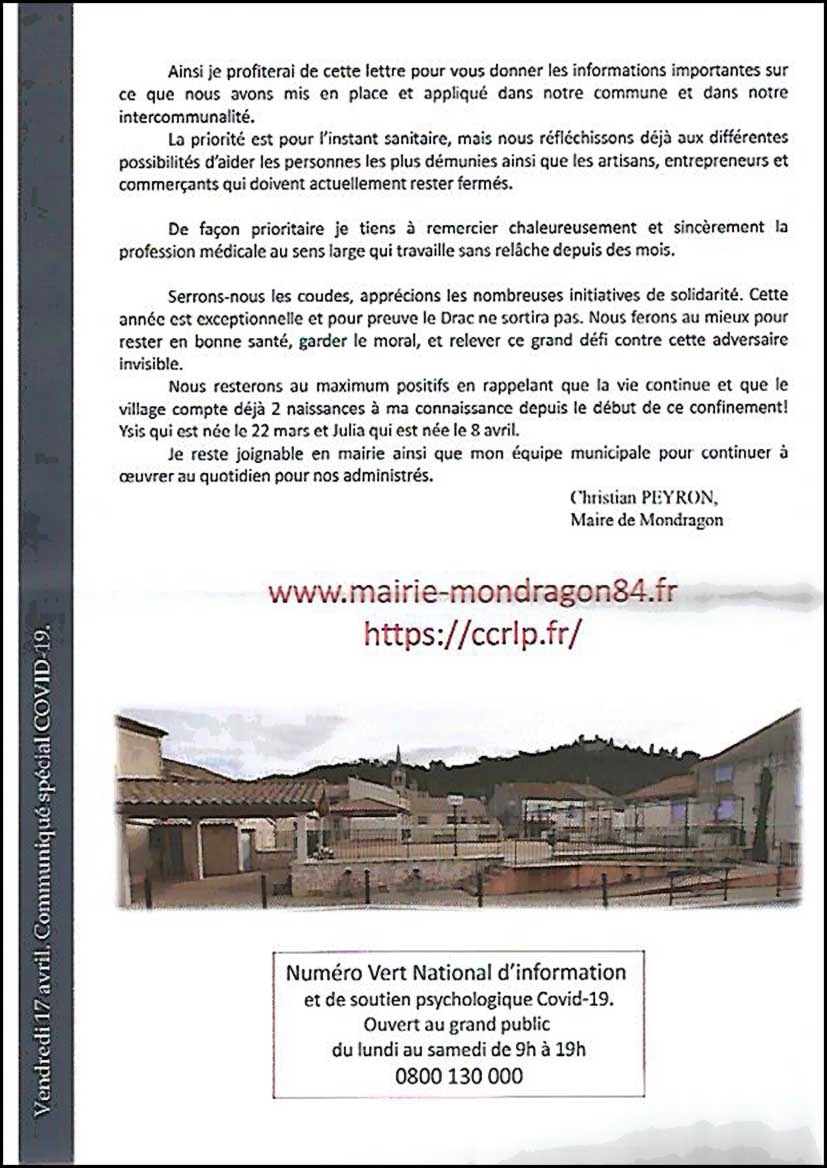 boîtes aux lettres des administrés. Ceci en vue du déconfinement