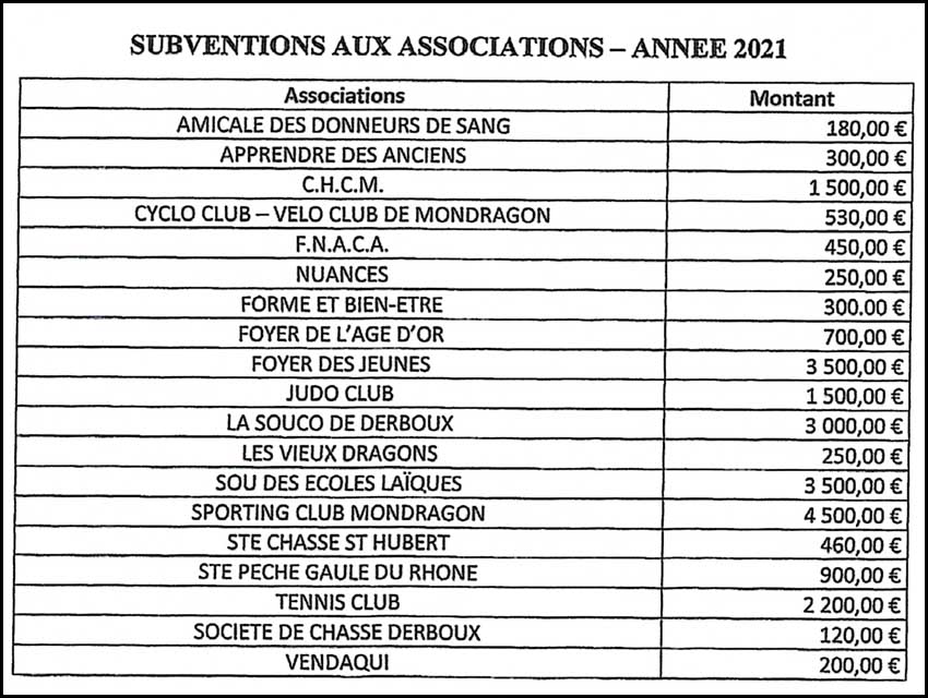 Fragilisées par la crise sanitaires, les associations locales ont des difficultés financières avec des effectifs réduits. Le montant des subventions est quand même maintenu pour 2021.