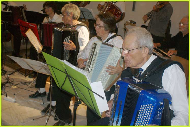 essentiellement des accordéons, diatoniques et chromatiques. Un clavier