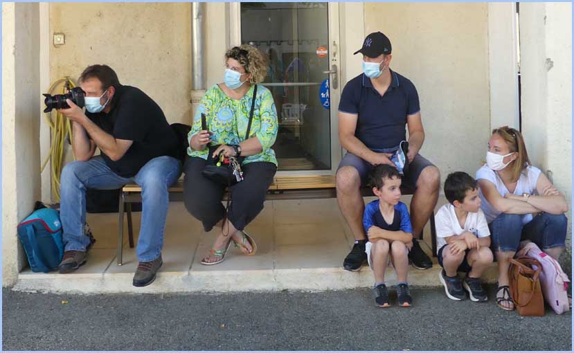 ![]() L'auditoire masqué garde ses distances sur le balcon. |
