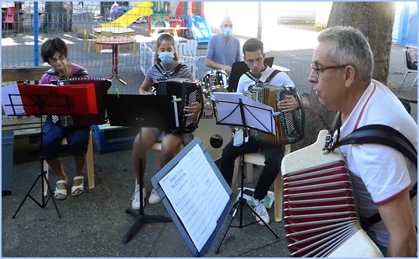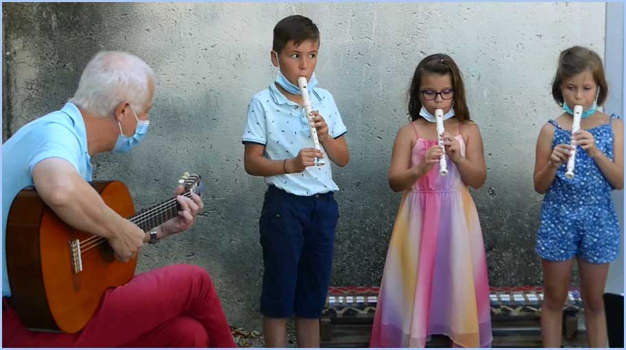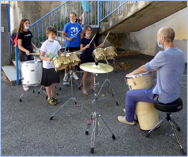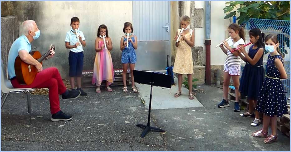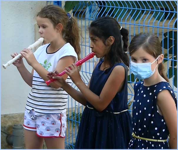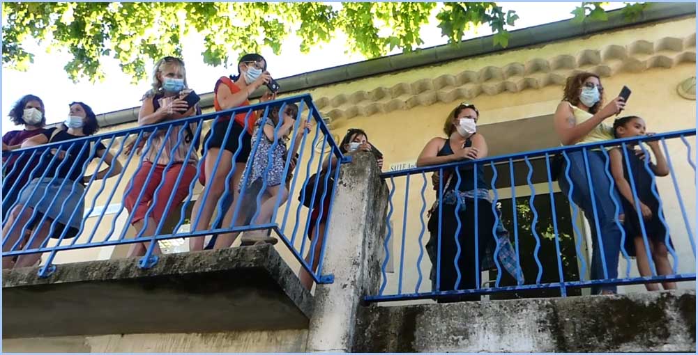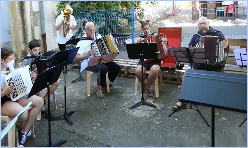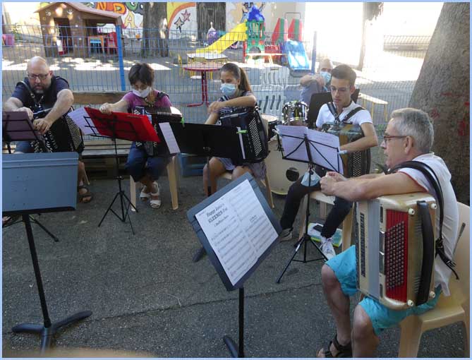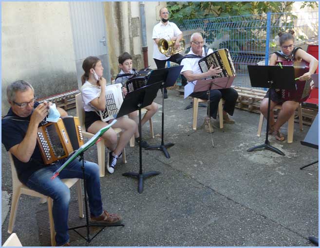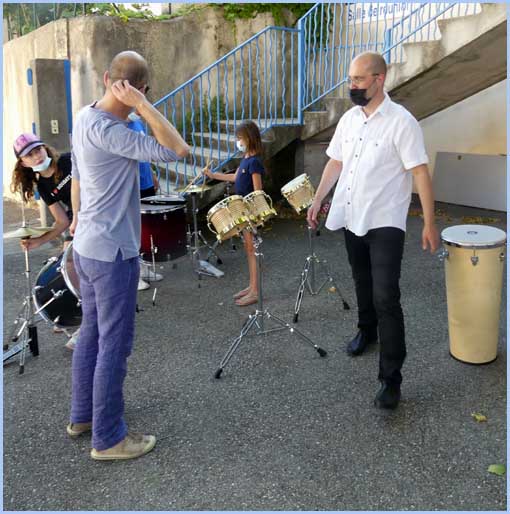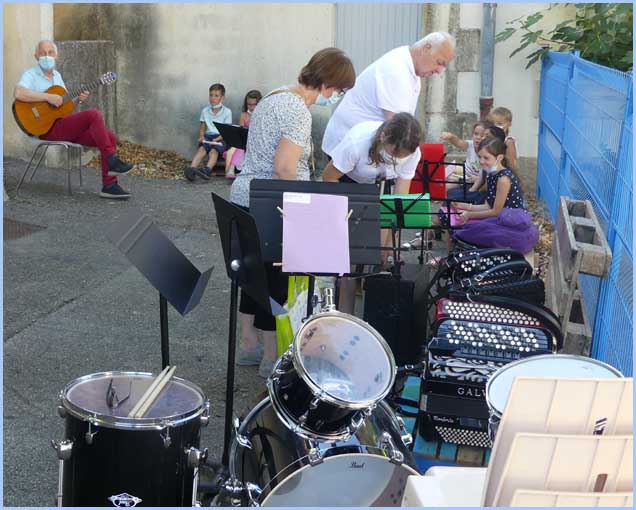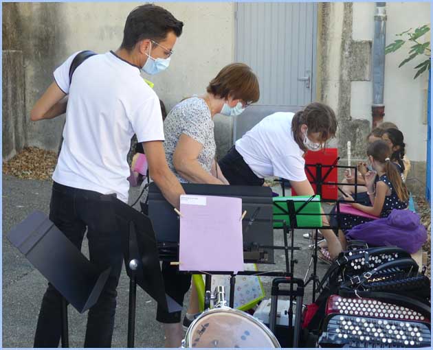 ![]() ![]() ![]() Branle-bas de combat dans la cour... pour un concert public aéré anti-pandémique ! |