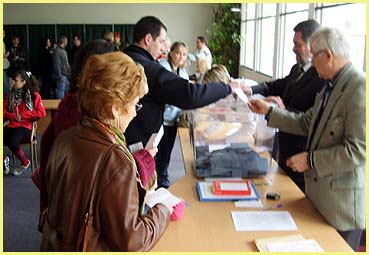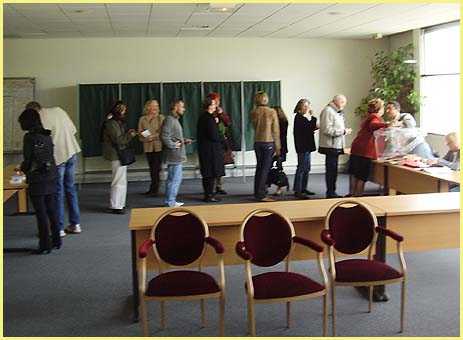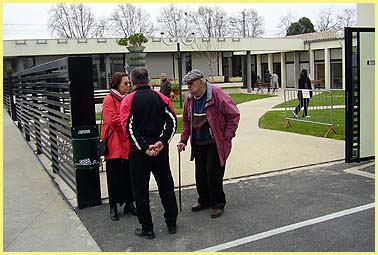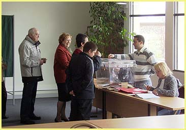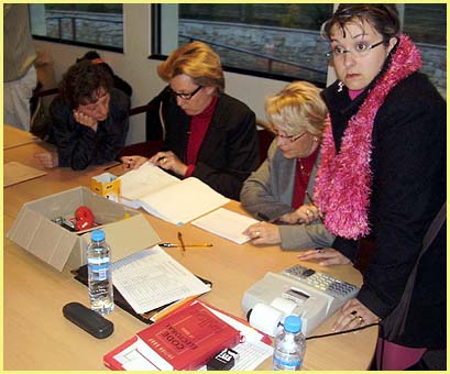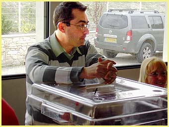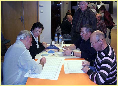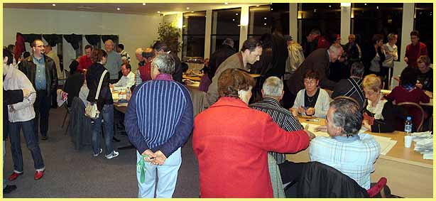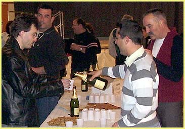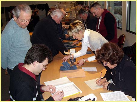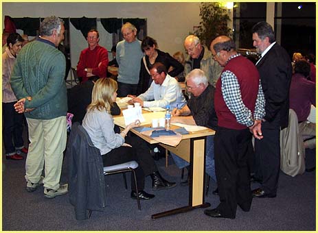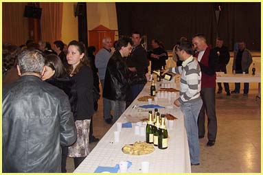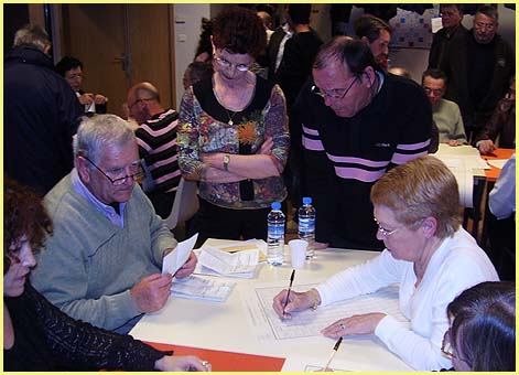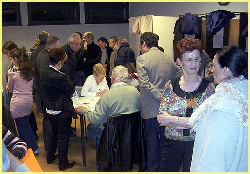 p Le maire va de table en table. Rappelons qu'il y a trois bureaux de vote : deux à la mairie, un au hameau de Derboux. |