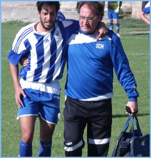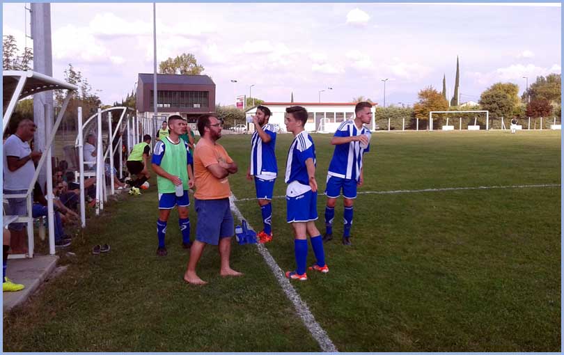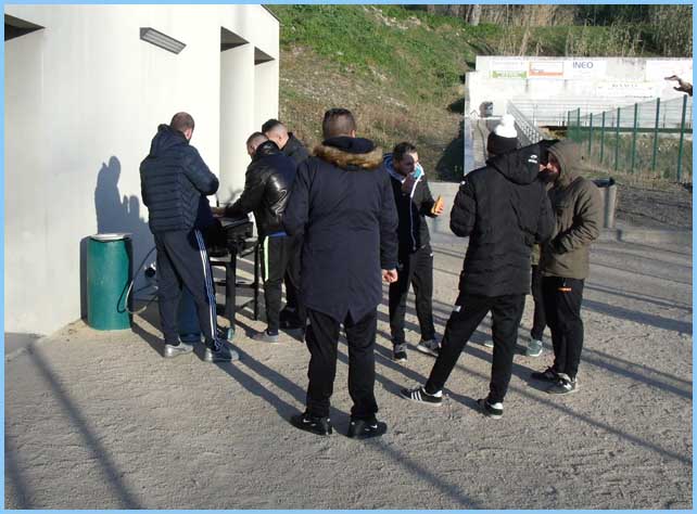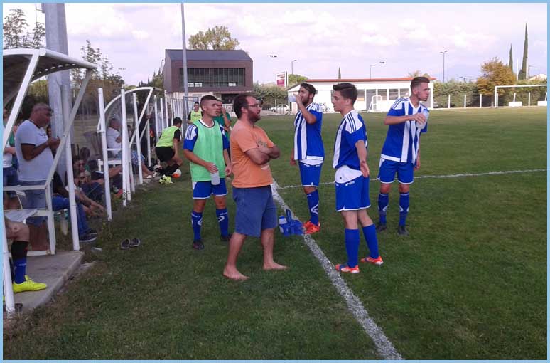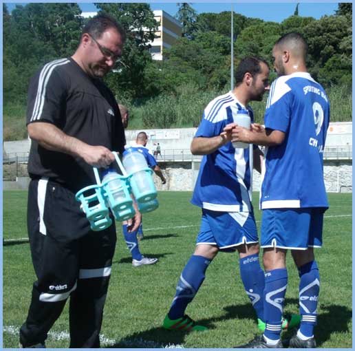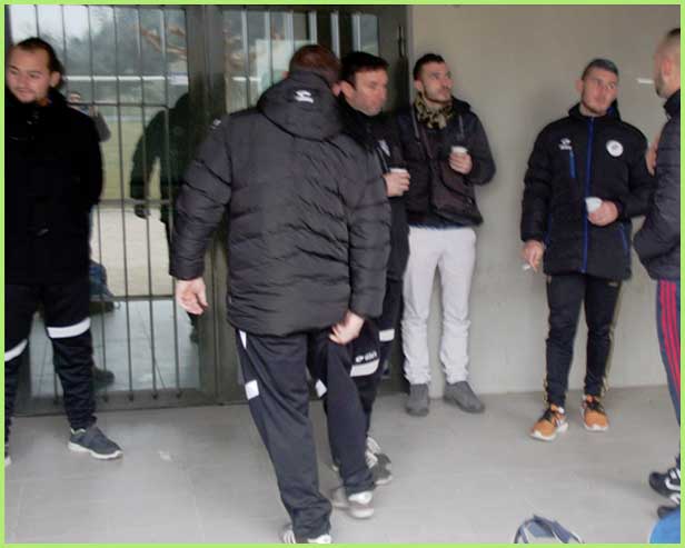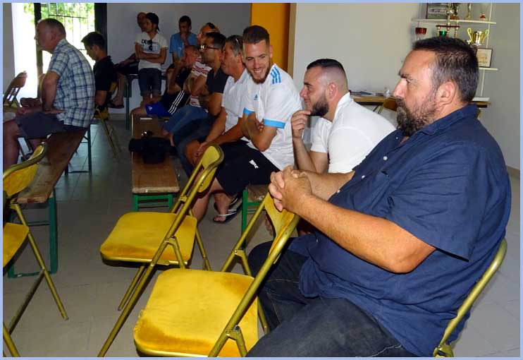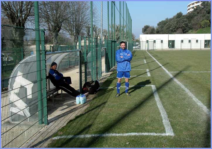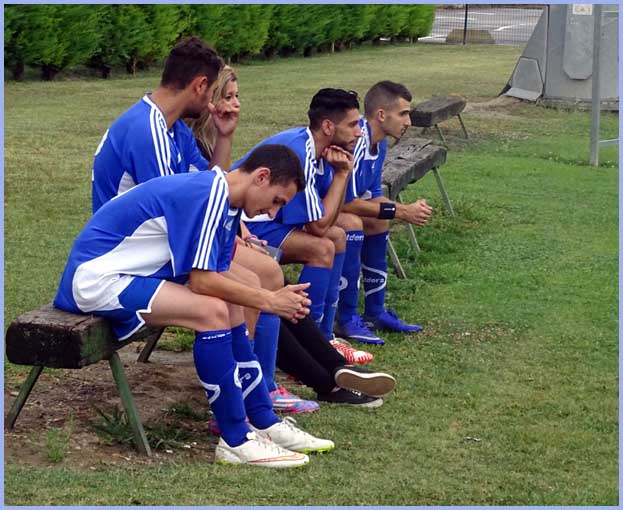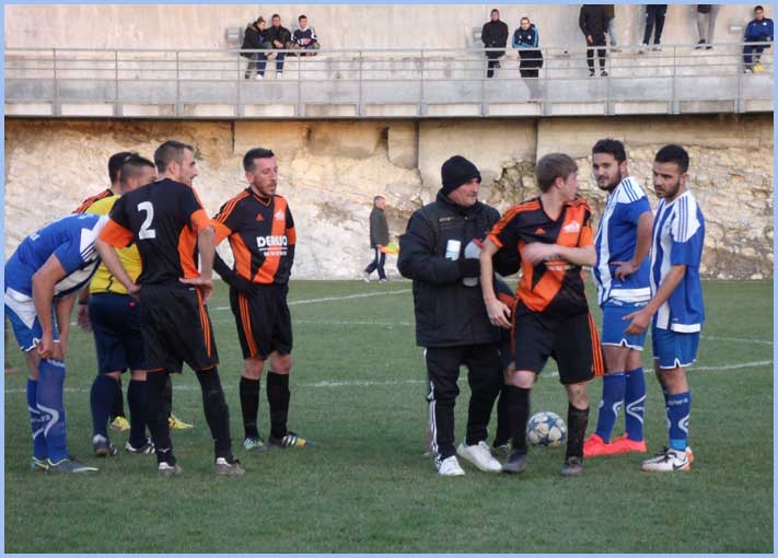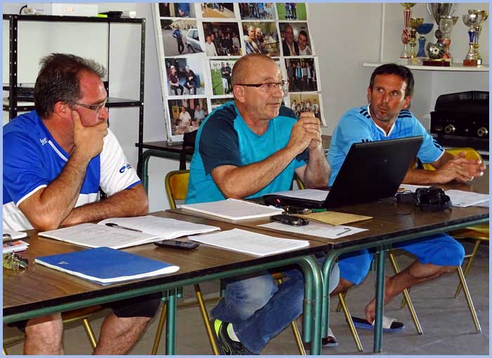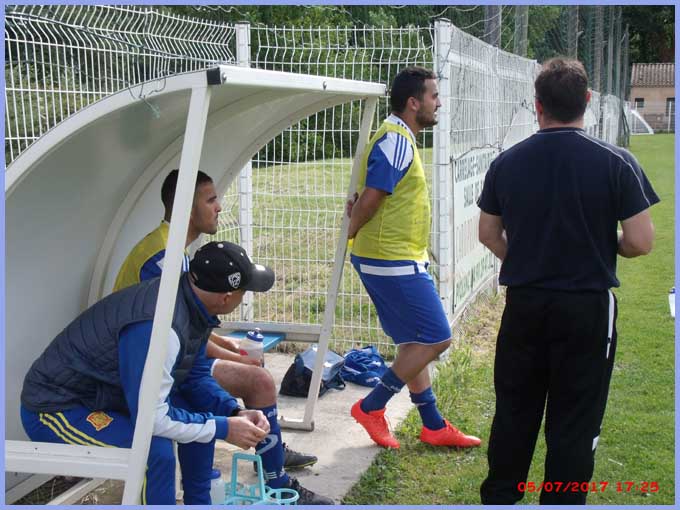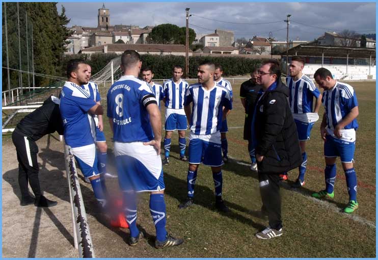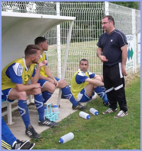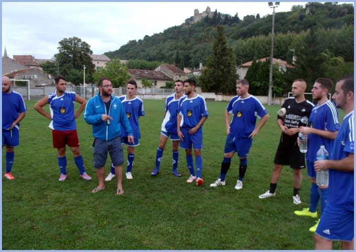 L'équipe première qui a atomisé Bédarrides.     L'entraîneur donne des conseils pendant une pause.