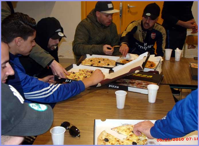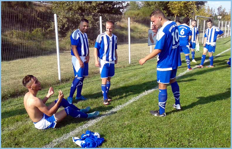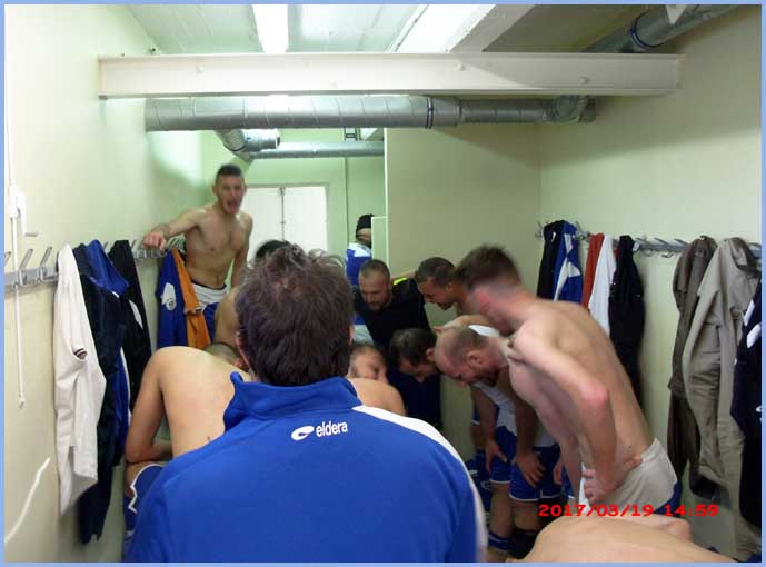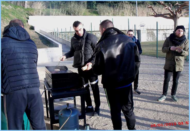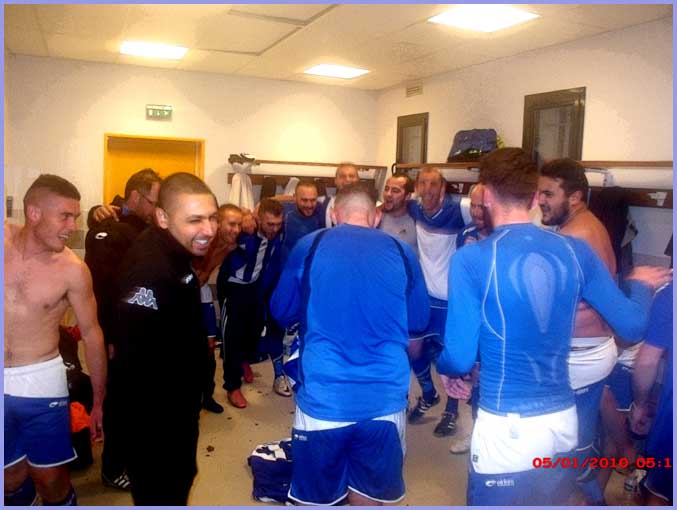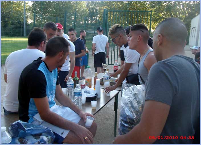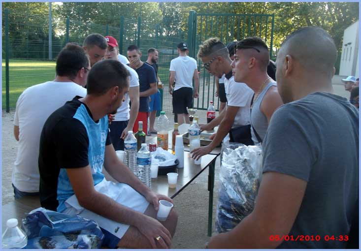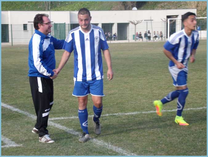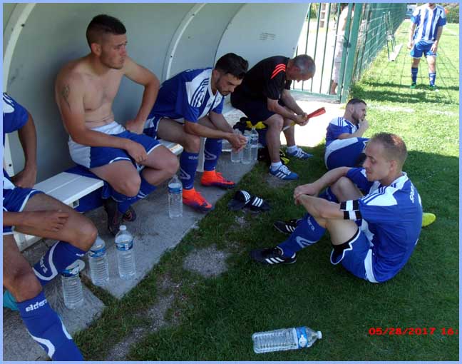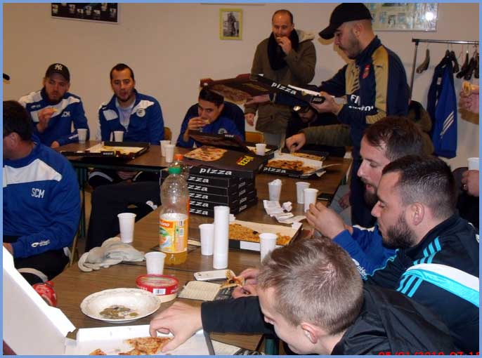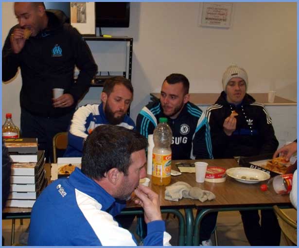 Mi-temps décontractée avec 4 buts d'avance.        Julien, fier de son quadruplé !             Kamal auteur d'un doublé