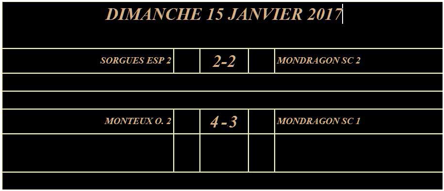 Valréas 2 ayant fait forfait Mondragon 2 gagne par 3 à 0