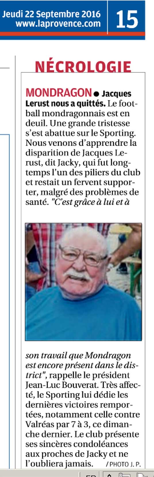 C’est avec grande tristesse que nous venons d’apprendre la disparition de Jacques Lerust « Jacky ».