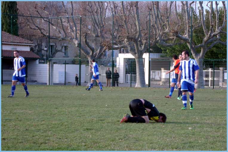 « Nous sommes revenus de ces deux déplacements avec 2 x 4 buts dans nos bagages. Deux 4 à 0 qui ont du mal à passer mais très logique ! La réserve, avec ses moyens, s’est bien battue mais Courthézon était vraiment beaucoup plus fort que nous. Quant à la une, je pense que la mouche Tsé –Tsé avait piqué tous nos joueurs ! L’équipe entière dormait sur le terrain, aucune passe, aucun tir cadré, des cadeaux aux adversaires, bref la Bérézina ! Je n’arrive pas à comprendre pourquoi sur deux dimanches, nous n’arrivons pas à voir les mêmes joueurs sur le terrain. Il va falloir se bouger un peu plus si nous voulons rester dans les premières places. Ce qui m’énerve un peu, c’est que nous avons le potentiel pour y arriver, mais il va falloir se faire un peu plus mal qu’hier. Test grandeur nature dimanche prochain en coupe chez les « Franco-Turc d’Avignon ».                                 Le président
