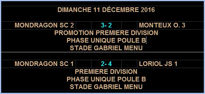 Derniere minute. Ttirage du deuxième tour Mondragon contre Calavon (PHB) aïe, aïe aïe !!!! Là, il y a un match ! intéressant !