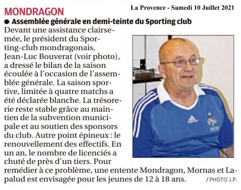 Sporting-Club Mondragonnais Samedi 27 Juin 2020