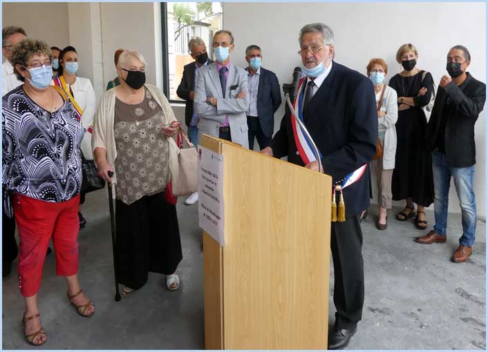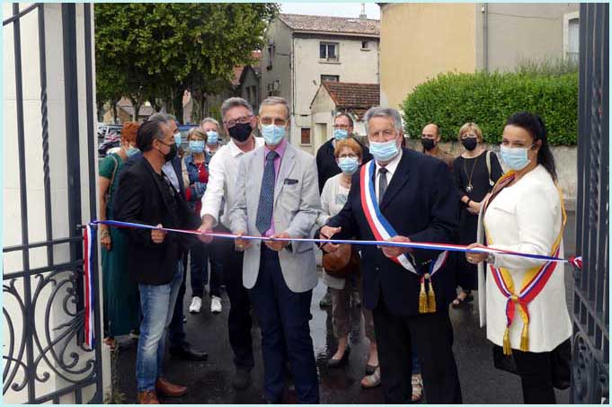 ![]() ![]() ![]() Coupe du ruban inaugural et dévoilement d'une plaque |