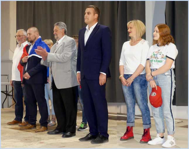 Submergé par les vivats, Nicolas Boyer y est allé aussi d’une tendre homélie : « Je remercie le maire pour tant d’honneur, mes parents Colette et Bernard Boyer de m’avoir transmis les capacités physiques et mentales nécessaires, mon épouse Noémie pour m’avoir porté jusqu’au Graal, mes enfants Kristina et Karsten pour avoir supporté leur père pas toujours facile, et bien sûr tous mes potes pour leur soutien sans faille. »     J. P.