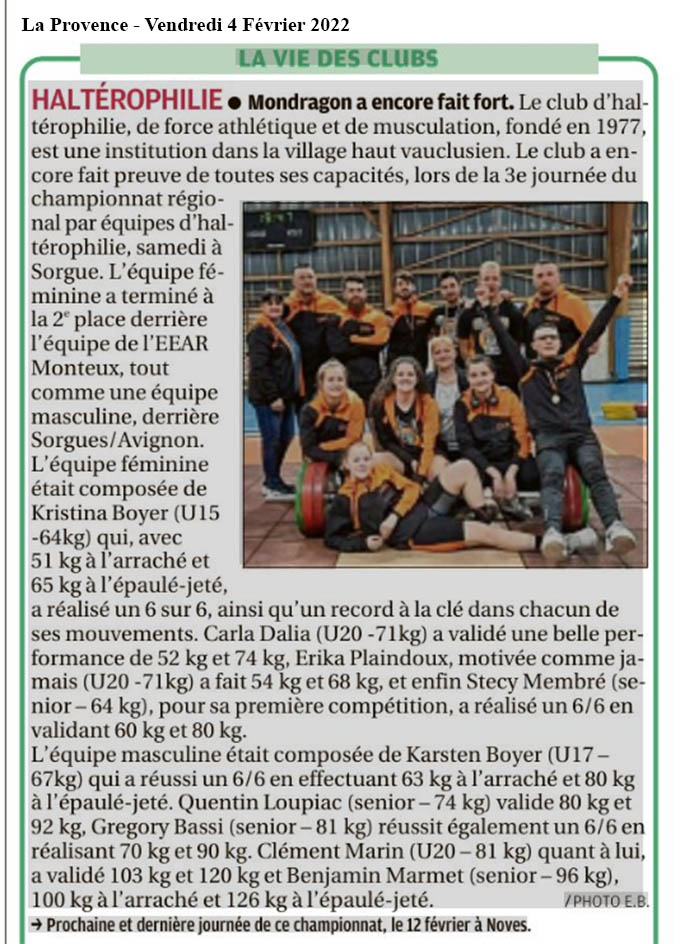 Ville de Mondragon - Octobre 2021 Cercle haltérophile Episodes précédents