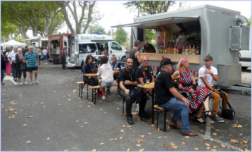 Cette dure réalité peut surprendre. Un tour d’horizon plus approfondi n’a cependant rien de maladif. Ces gens-là se portent plutôt bien. En témoignent une dizaine d’exposants régionaux, trois concerts successifs (Cover’s, Old Brekers et Impact Rock), une parade motorisée en ville, un défilé et un show de pin-ups, divers stands (tatouage, buvette, fast-food) et un spectacle de feu au final.