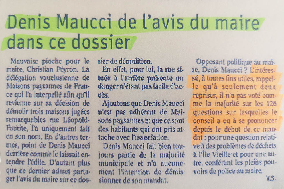 M. Maucci a voté pour ce projet en séance délibérante le 22 juin et 28 septembre 2020 (je vous laisse le soin de découvrir l’article de presse réalisé à l’époque en pièce jointe).