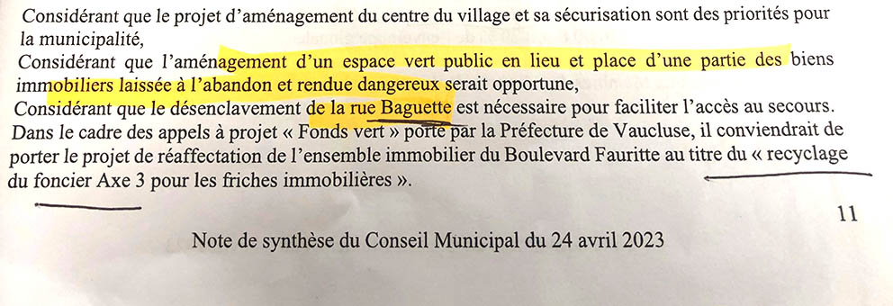 Dans la précipitation, le document de synthèse, reçu par les élus, fait état de la rue Baguette située près de l’église. Or le projet concerne la Traverse de la Cuillère. Ce qui n’est pas la même chose.