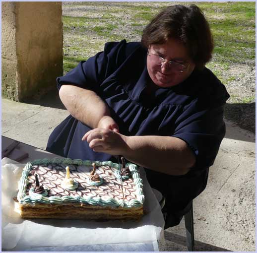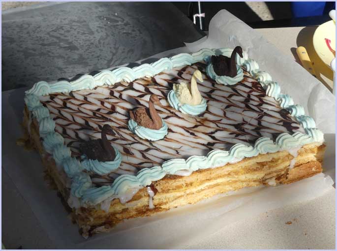 dessert... Gros mille-feuille avec cygnes en chocolat sur sucre glacé...! |