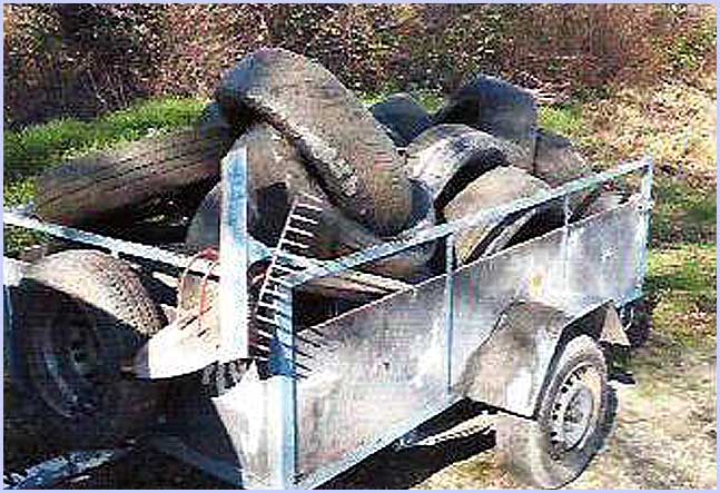 quarantaine de pneus, d’innombrables cannettes de bière, un