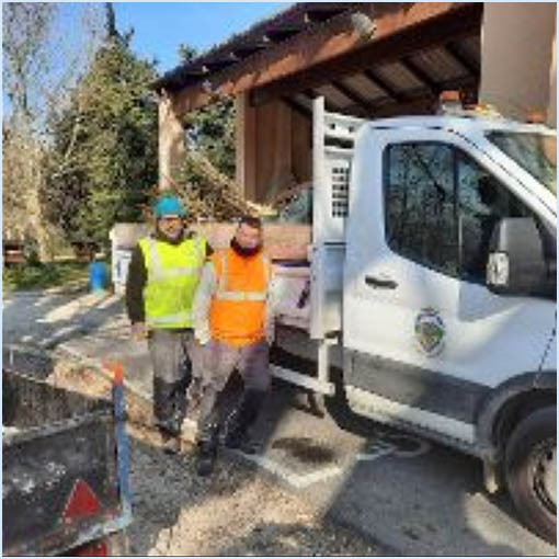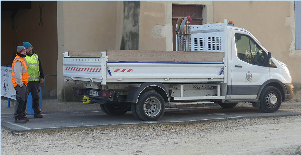 ![]() ![]() Deux employés municipaux et un camion font partie de l'opération. |
