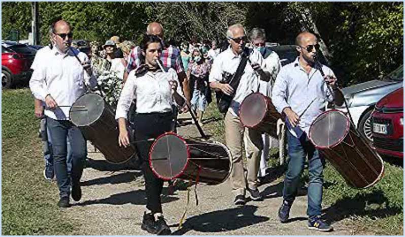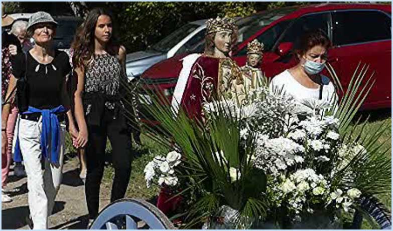 Réduit à l’essentiel, cette année, le pèlerinage s’est privé de ses attributs habituels. Pas de kermesse ni de cordiales agapes en plein air, encore moins de spectacle ou jeux de boules. Covid oblige ! Partie du village et précédée de tambourinaires et d’une statue de la Vierge véhiculée sur une charrette fleurie, la procession a parcouru à pied 4 kilomètres pour atteindre la chapelle de Notre-Dame des Plans, restée vide. L’office était célébré à l’extérieur par le père dominicain Joseph Pini, invité pour la circonstance par le père André Wasilewski qui l’assistait. Dûment masqués, chorale comprise, les ouailles ont chanté les louanges à Marie, remerciée depuis trois siècles pour avoir notamment épargné Mondragon de la peste de 1720 ou, au siècle dernier, dévié le tracé du proche canal de Donzère-Mondragon évitant de justesse le rasage de la chapelle. Prions-là toujours de nous éviter le Covid 19.    J. P.