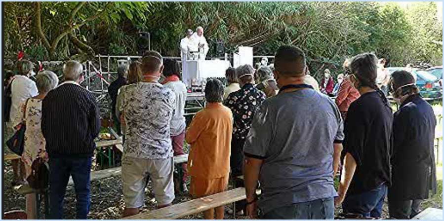 Messe en plein air pour éviter une concentration déconseillée dans la chapelle... Covid oblige !