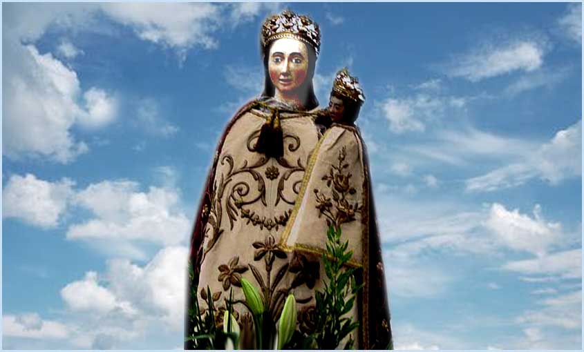 La Vierge est désormais véhiculée sur une charrette fleurie.
