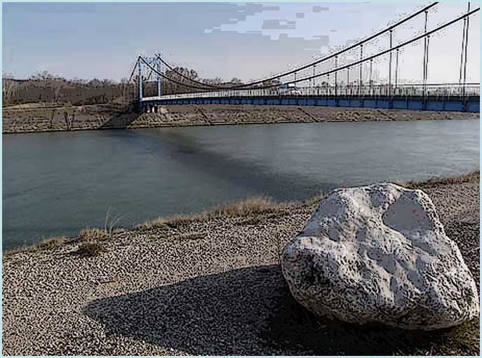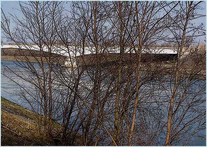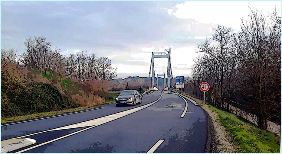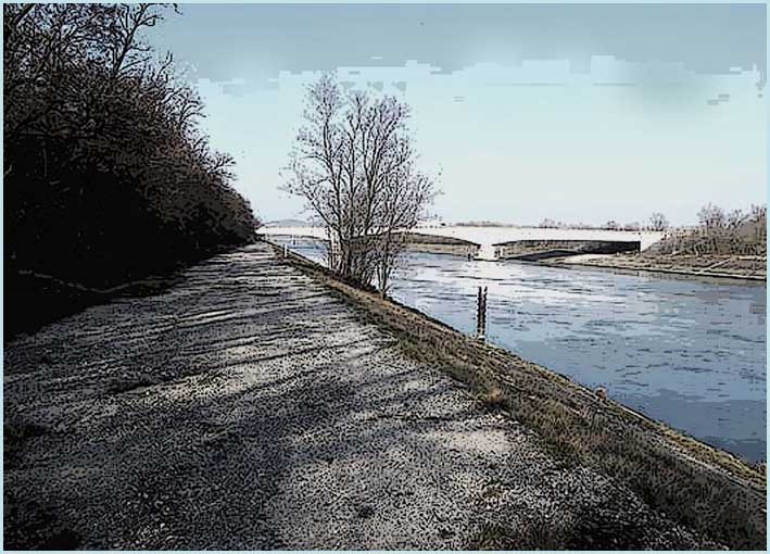 Nationale 7 et le pont sur le canal, puis par le chemin de la