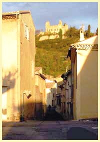 ttt Château fort uuu Comme tant d'autres villages, Mondragon s'est modernisé et y a laissé quelques plumes. Trop de platanes ont disparu. Les veilles fontaines aussi. Mais le château féodal coiffe toujours la colline. Au bout des rues, entre les toits, apparaissent quelques arpents de maquis et le profil des ruines. C'est l'arrière-plan naturel de la Fête médiévale du Drac (fin mai). |