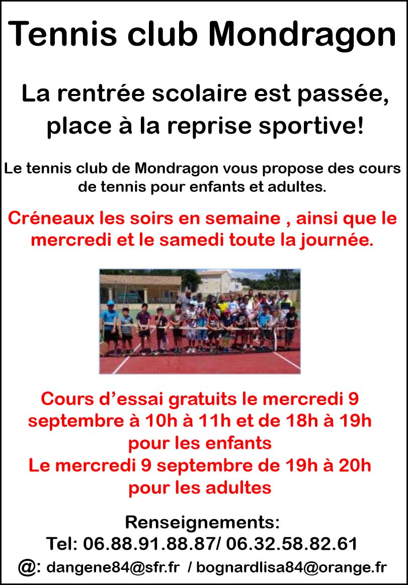 Le Tennis Club Mondragonnais vous convie à son assemblée générale qui se  déroulera
