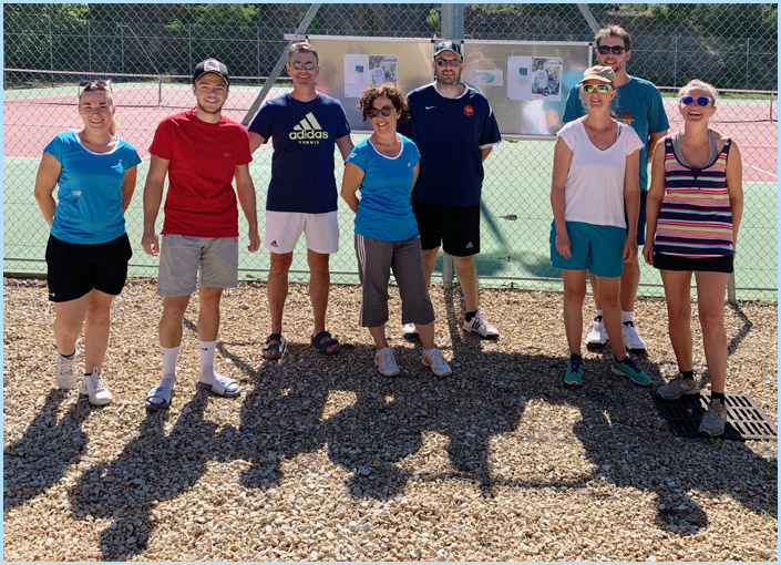 Nous avons accueilli, pour renforcer nos cours adultes, le Staff d’Éric, Lisa et Bastien du tennis club de Sorgues en tant que moniteur d’Etat venant en complément des cours de Jean-Baptiste BRETON. Bastien a pu ainsi dispenser des cours adultes (quatre femmes et quatre hommes) tous les jeudis soirs.