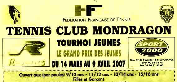 | Tennis-Club Mondragon Lundi 9 avril 2007 Tournoi des jeunes - Remise des prix |